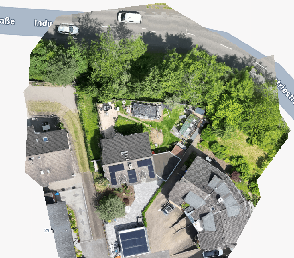 Wir erstellen hochauflösende, maßstabsgetreue Luftbildkarten (Orthofotos), die entzerrt und georeferenziert sind. Das bedeutet: Die Bilder können präzise in Karten, Pläne oder digitale Anwendungen (z. B. GIS) eingebunden werden.